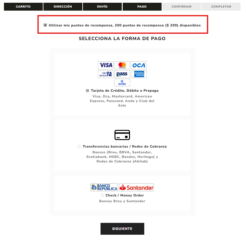 Para utilizarlos cuando llegas al método de pago, podrás seleccionar utilizar tus puntos como medio de pago: